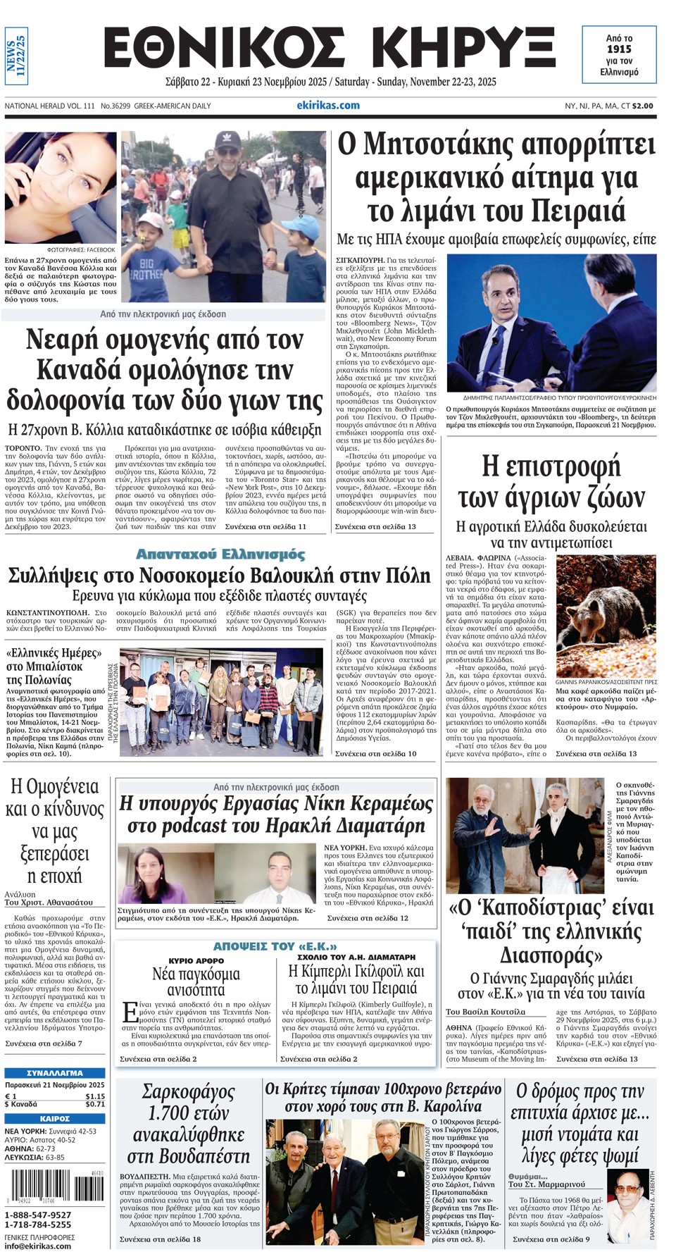 ΕΘΝΙΚΟΣ ΚΗΡΥΞ - 22 Νοεμβρίου 2025