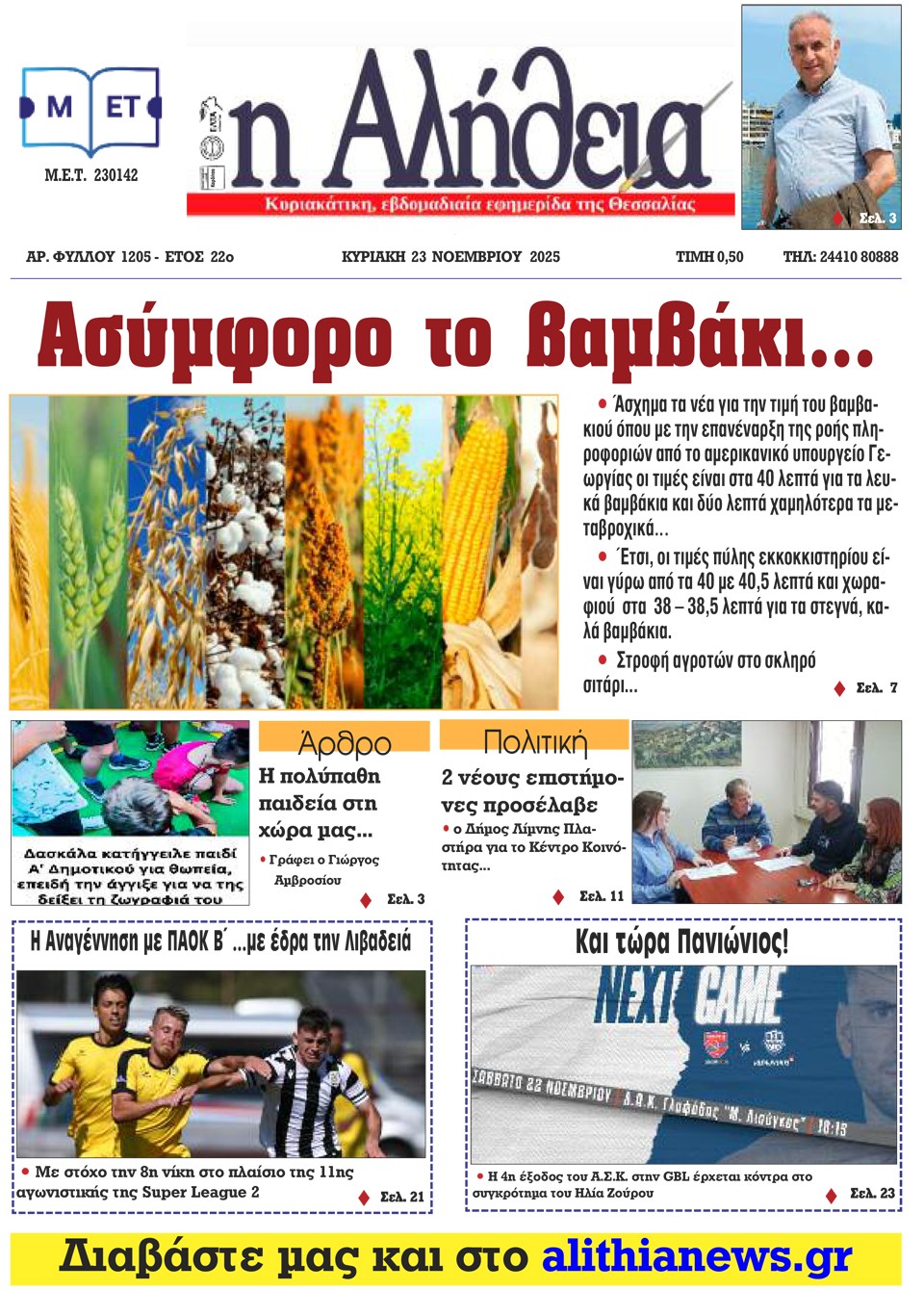 Η ΑΛΗΘΕΙΑ - 22 Νοεμβρίου 2025