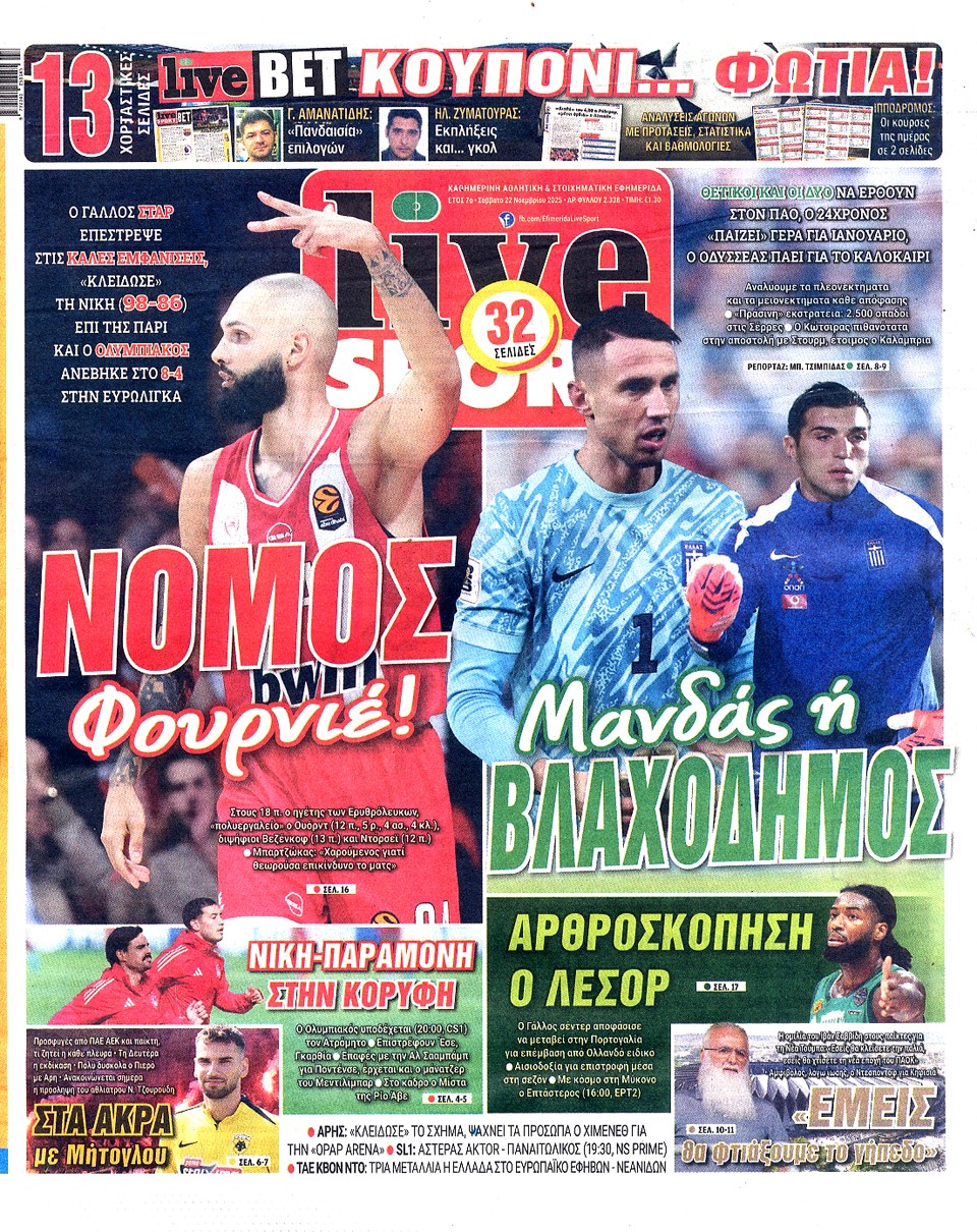LIVE SPORT - 22 Νοεμβρίου 2025