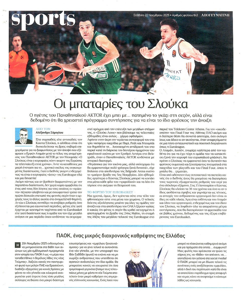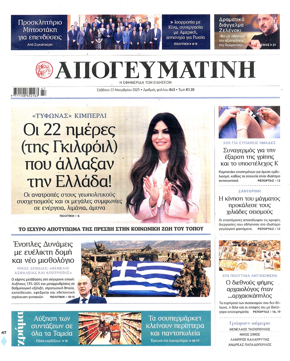ΑΠΟΓΕΥΜΑΤΙΝΗ - 22 Νοεμβρίου 2025