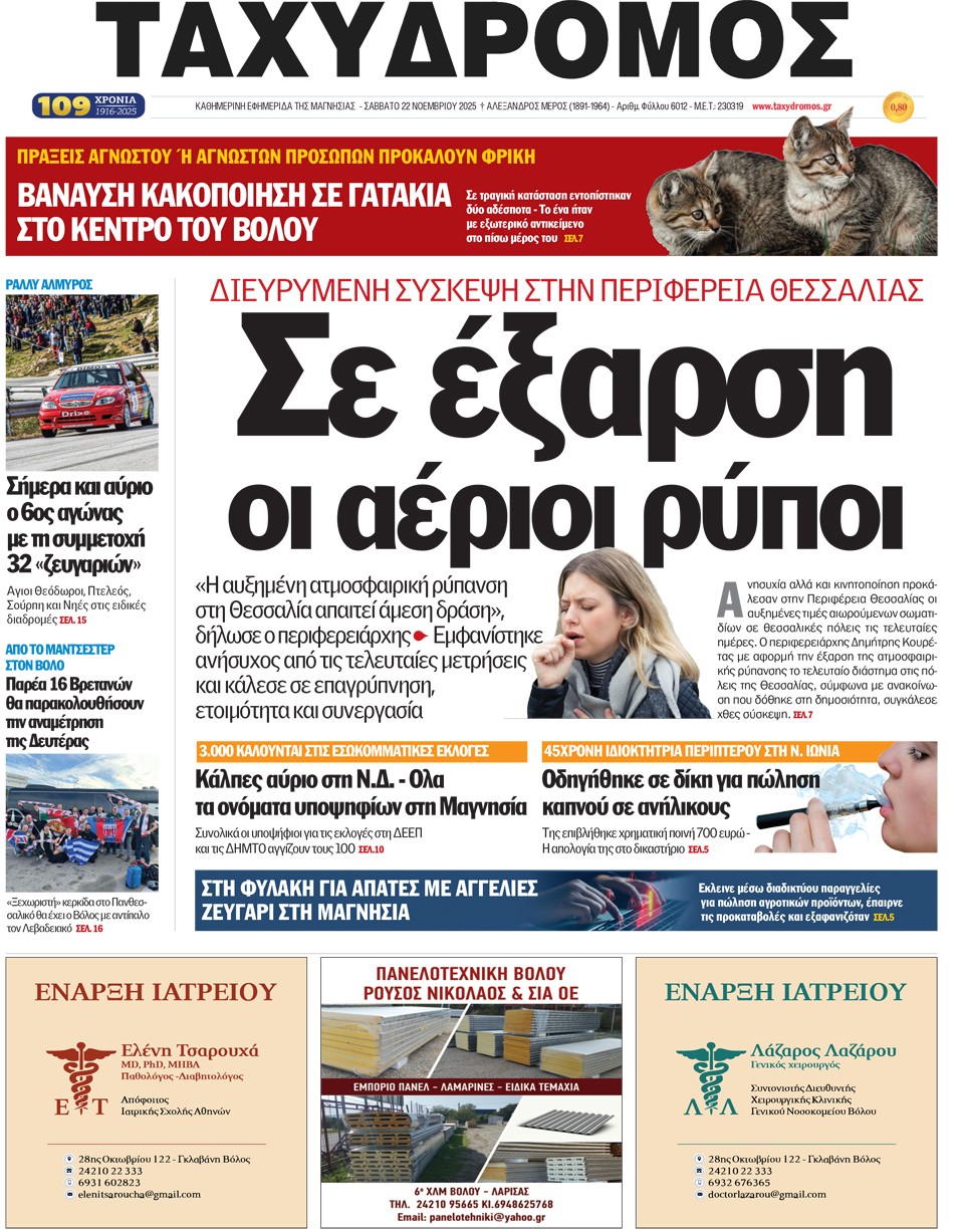 ΤΑΧΥΔΡΟΜΟΣ - 22 Νοεμβρίου 2025