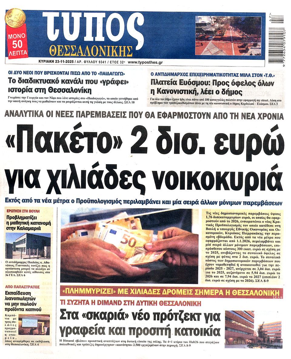 ΤΥΠΟΣ ΘΕΣΣΑΛΟΝΙΚΗΣ - 23 Νοεμβρίου 2025