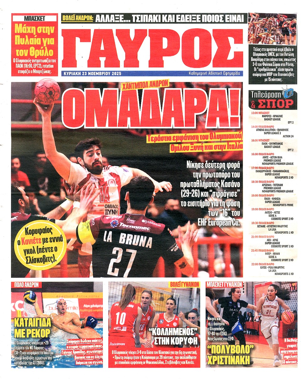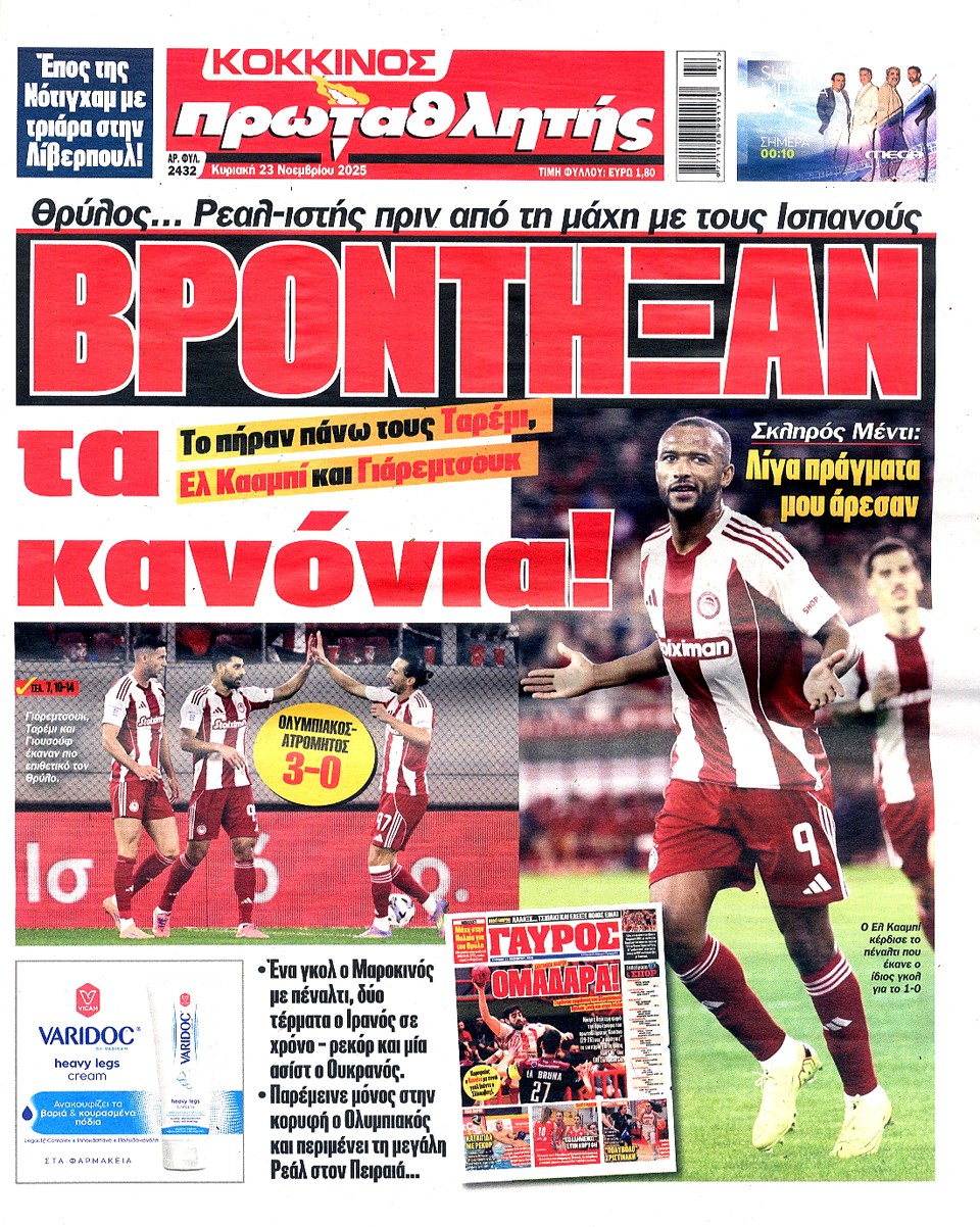 ΠΡΩΤΑΘΛΗΤΗΣ - 23 Νοεμβρίου 2025