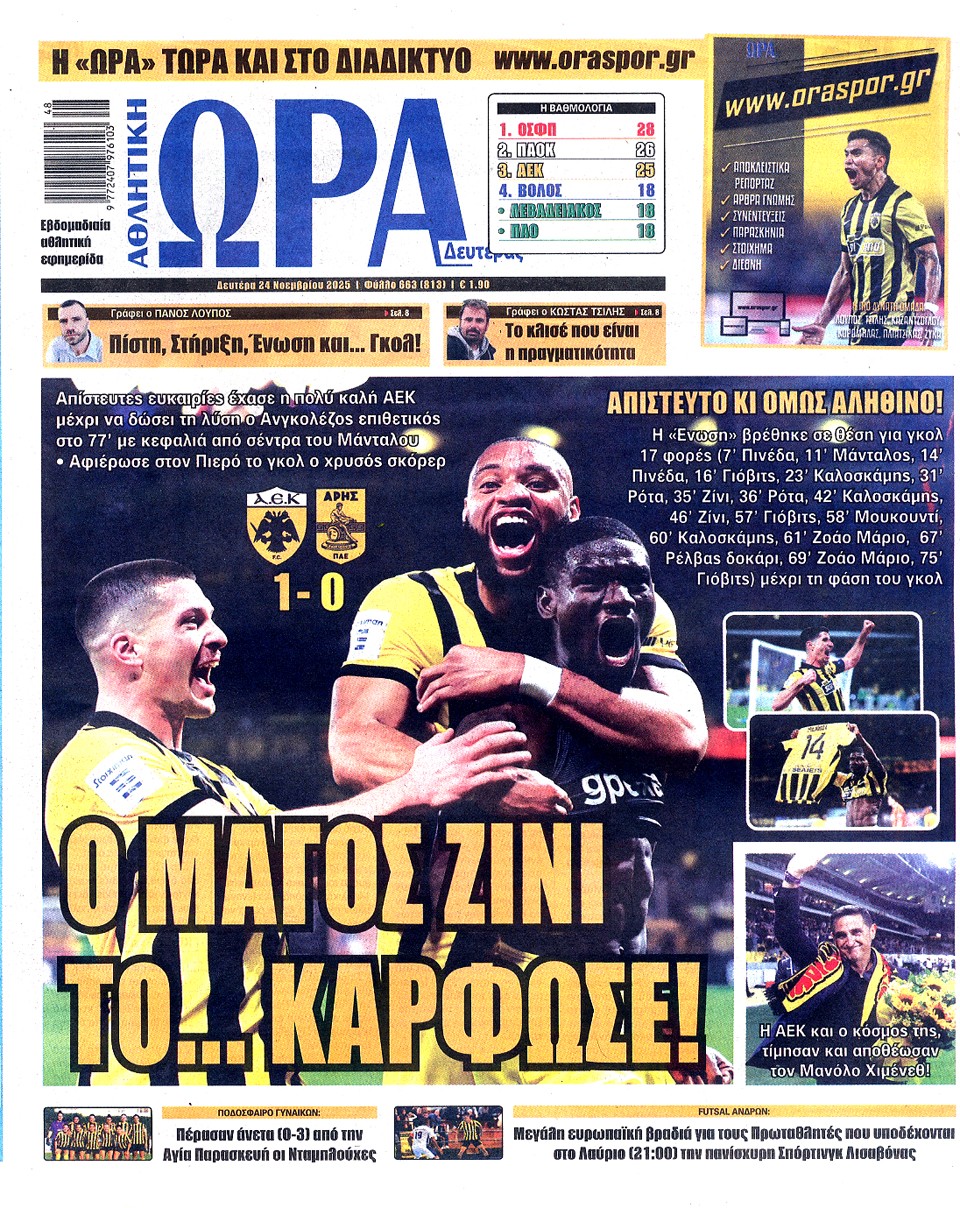 ΑΘΛΗΤΙΚΗ ΩΡΑ ΤΩΝ ΣΠΟΡ - 24 Νοεμβρίου 2025