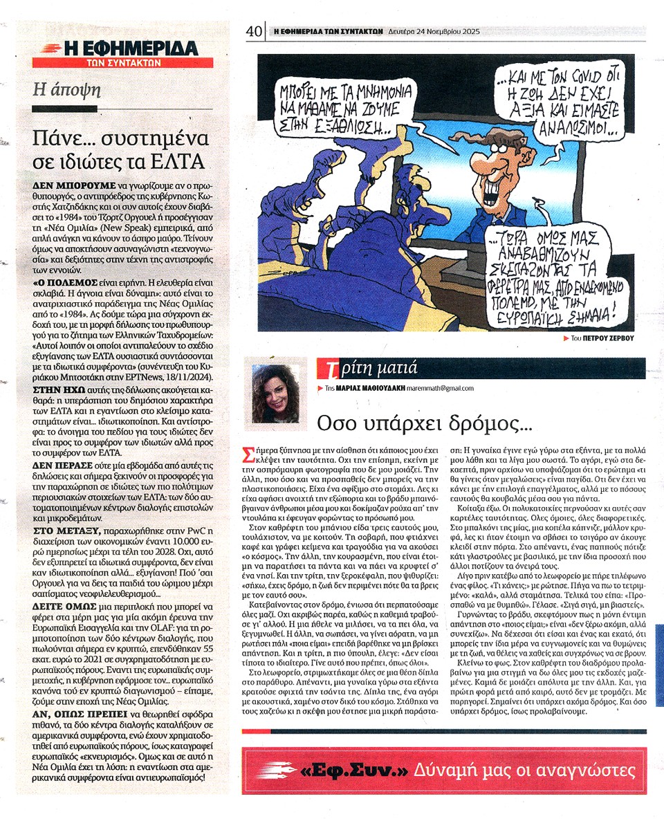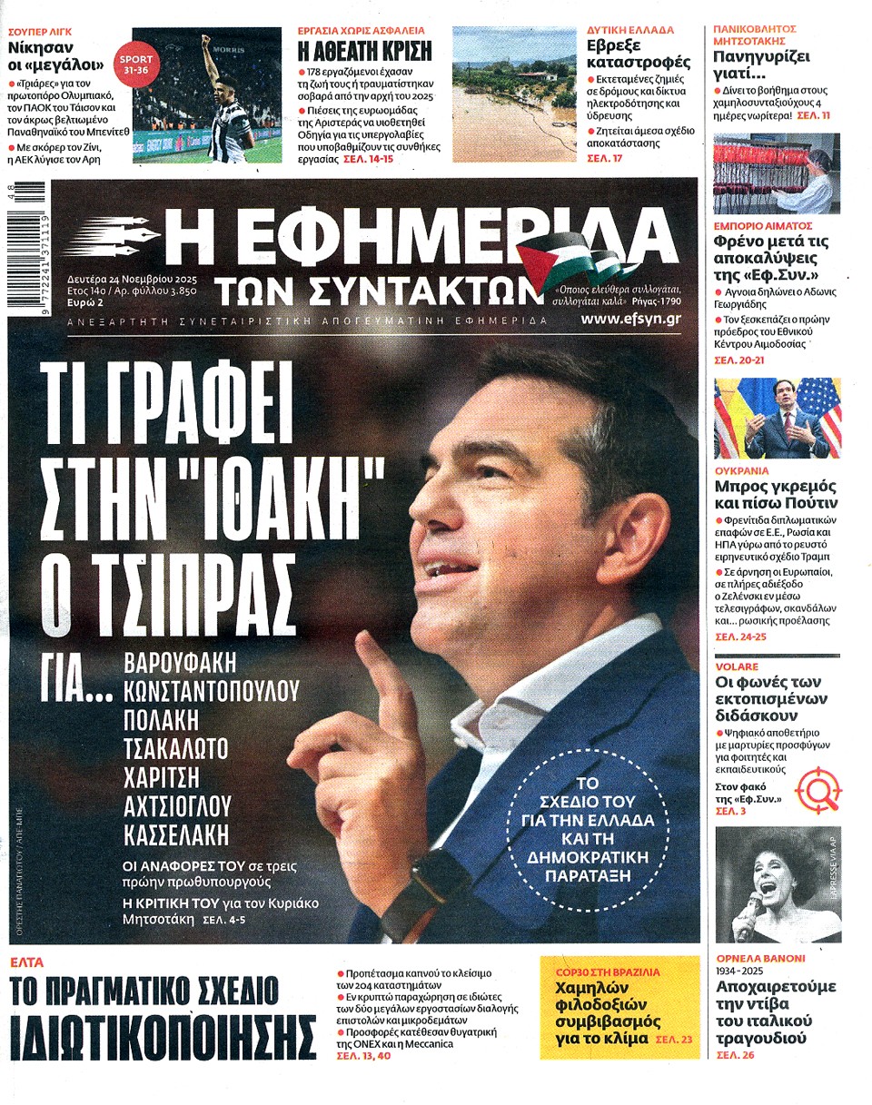 Η ΕΦΗΜΕΡΙΔΑ ΤΩΝ ΣΥΝΤΑΚΤΩΝ - 24 Νοεμβρίου 2025