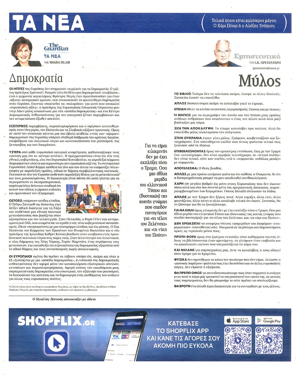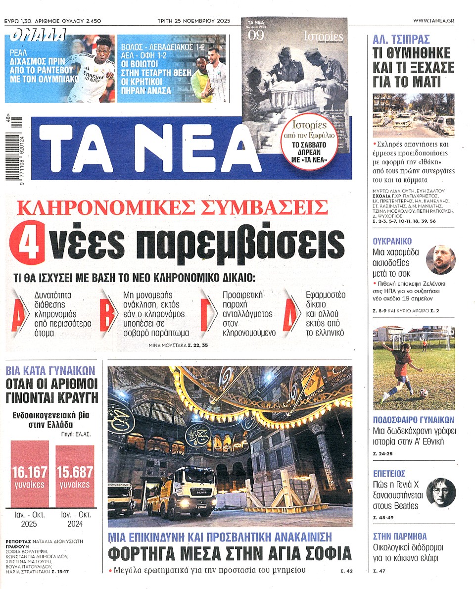 ΤΑ ΝΕΑ - 25 Νοεμβρίου 2025