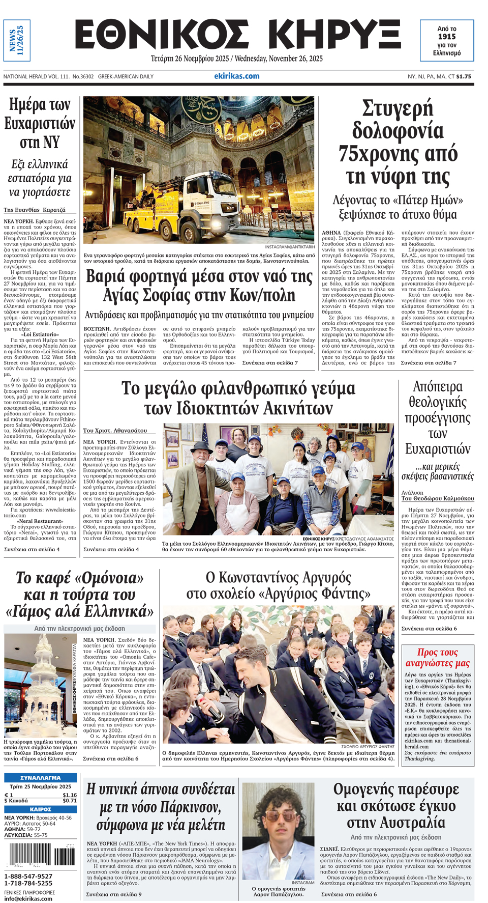 ΕΘΝΙΚΟΣ ΚΗΡΥΞ - 26 Νοεμβρίου 2025