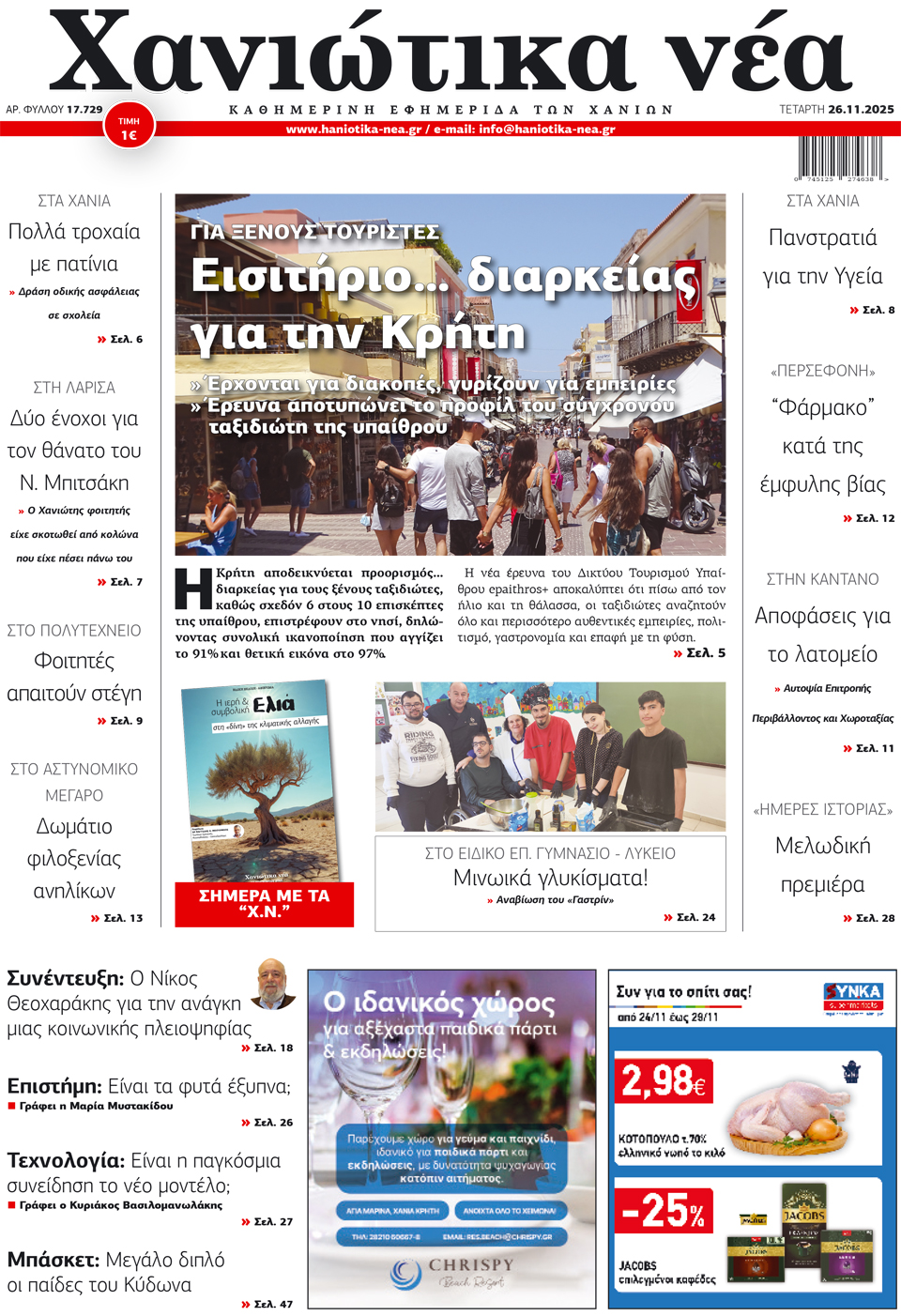 ΧΑΝΙΩΤΙΚΑ ΝΕΑ - 26 Νοεμβρίου 2025