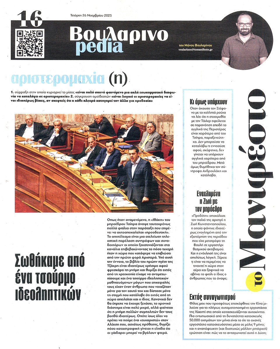 ΤΟ ΜΑΝΙΦΕΣΤΟ - 26 Νοεμβρίου 2025