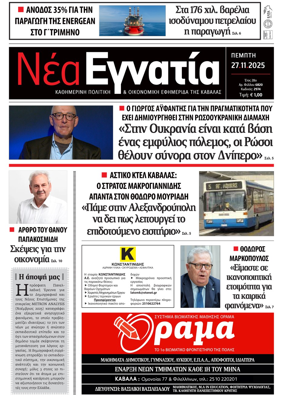 ΝΕΑ ΕΓΝΑΤΙΑ - 27 Νοεμβρίου 2025
