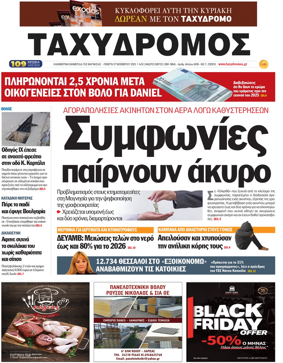 ΤΑΧΥΔΡΟΜΟΣ - 27 Νοεμβρίου 2025