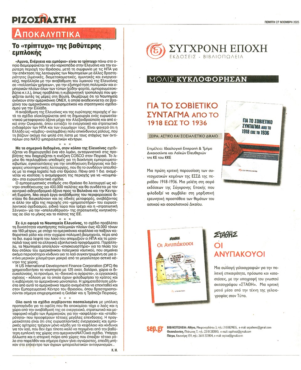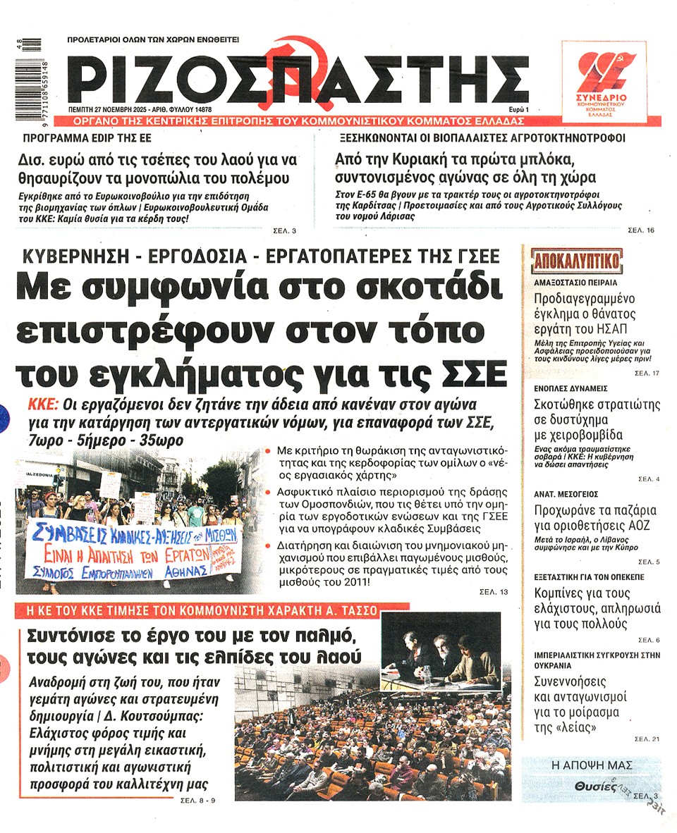 ΡΙΖΟΣΠΑΣΤΗΣ - 27 Νοεμβρίου 2025