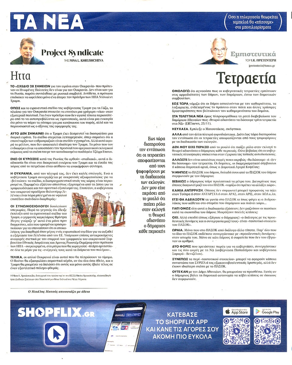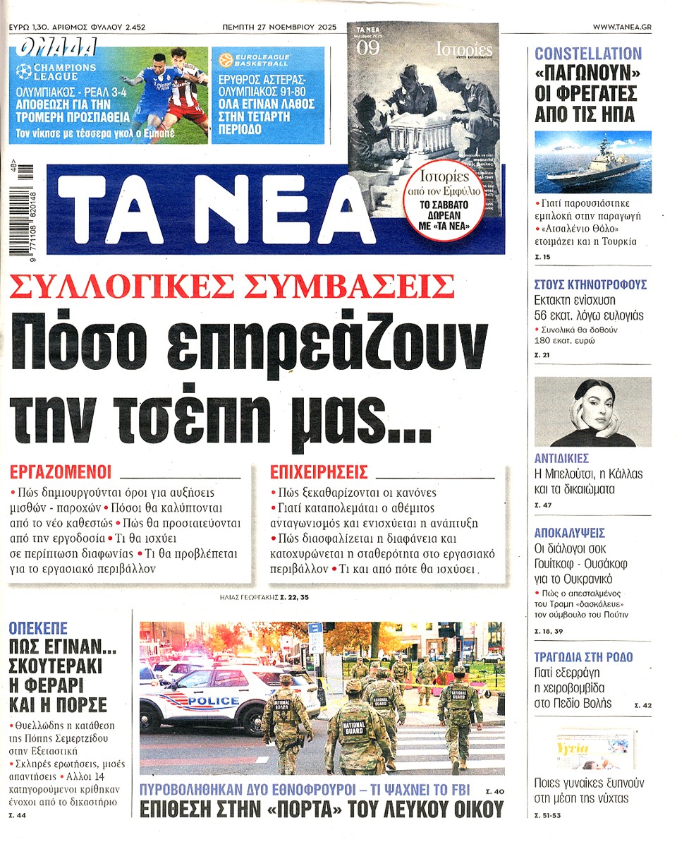 ΤΑ ΝΕΑ - 27 Νοεμβρίου 2025