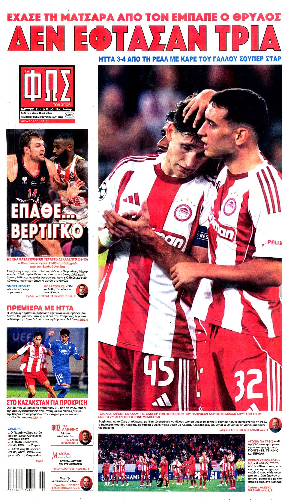 ΦΩΣ ΤΩΝ ΣΠΟΡ - 27 Νοεμβρίου 2025