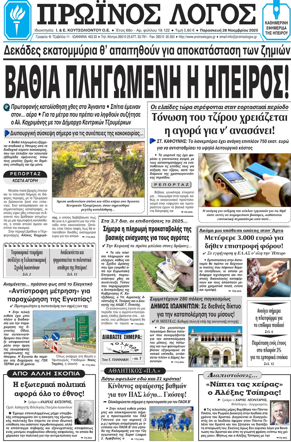ΠΡΩΙΝΟΣ ΛΟΓΟΣ - 28 Νοεμβρίου 2025