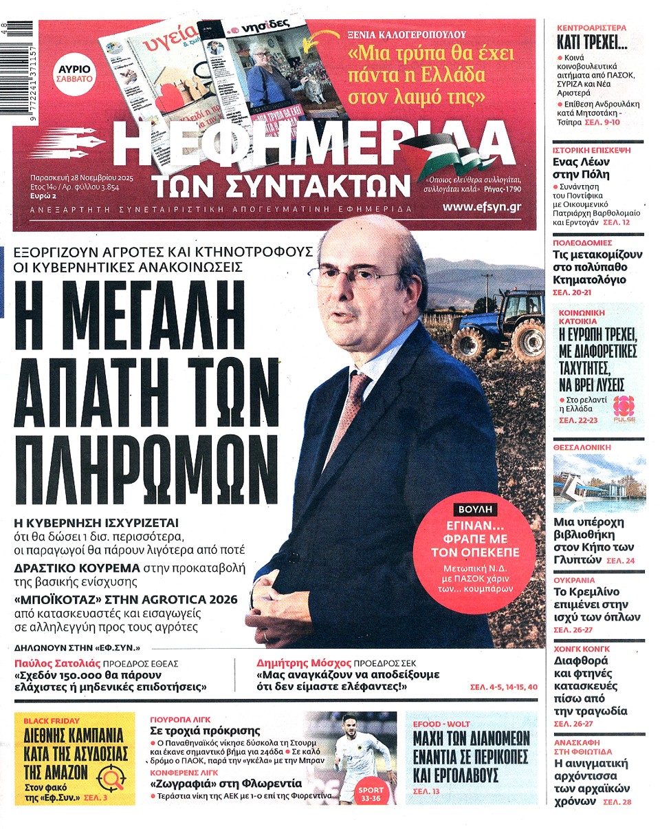 Η ΕΦΗΜΕΡΙΔΑ ΤΩΝ ΣΥΝΤΑΚΤΩΝ - 28 Νοεμβρίου 2025