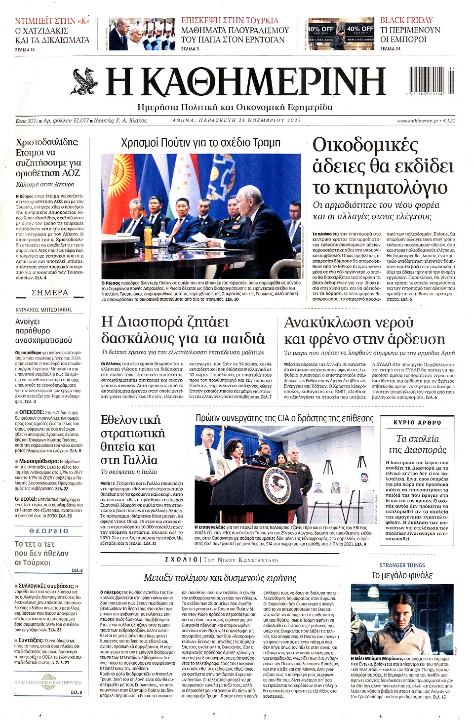 ΚΑΘΗΜΕΡΙΝΗ - 28 Νοεμβρίου 2025