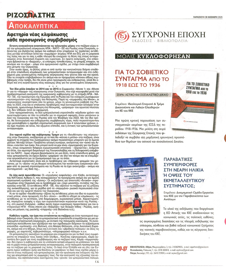 ΡΙΖΟΣΠΑΣΤΗΣ - 28 Νοεμβρίου 2025