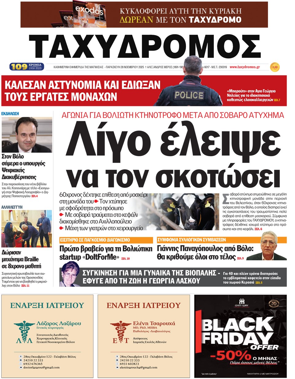 ΤΑΧΥΔΡΟΜΟΣ - 28 Νοεμβρίου 2025