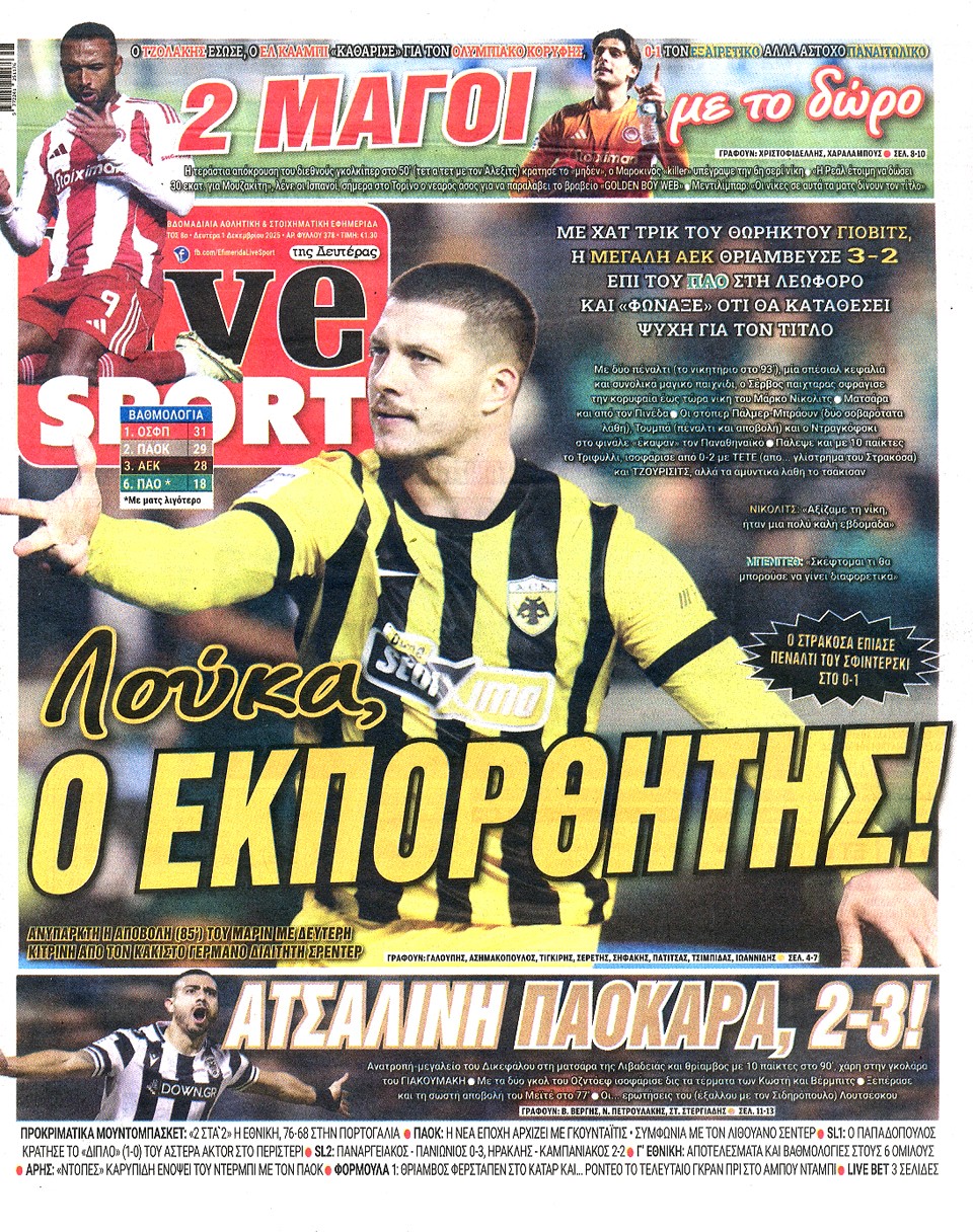LIVE SPORT - 01 Δεκεμβρίου 2025