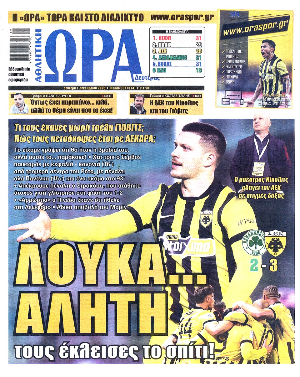ΑΘΛΗΤΙΚΗ ΩΡΑ ΤΩΝ ΣΠΟΡ - 01 Δεκεμβρίου 2025