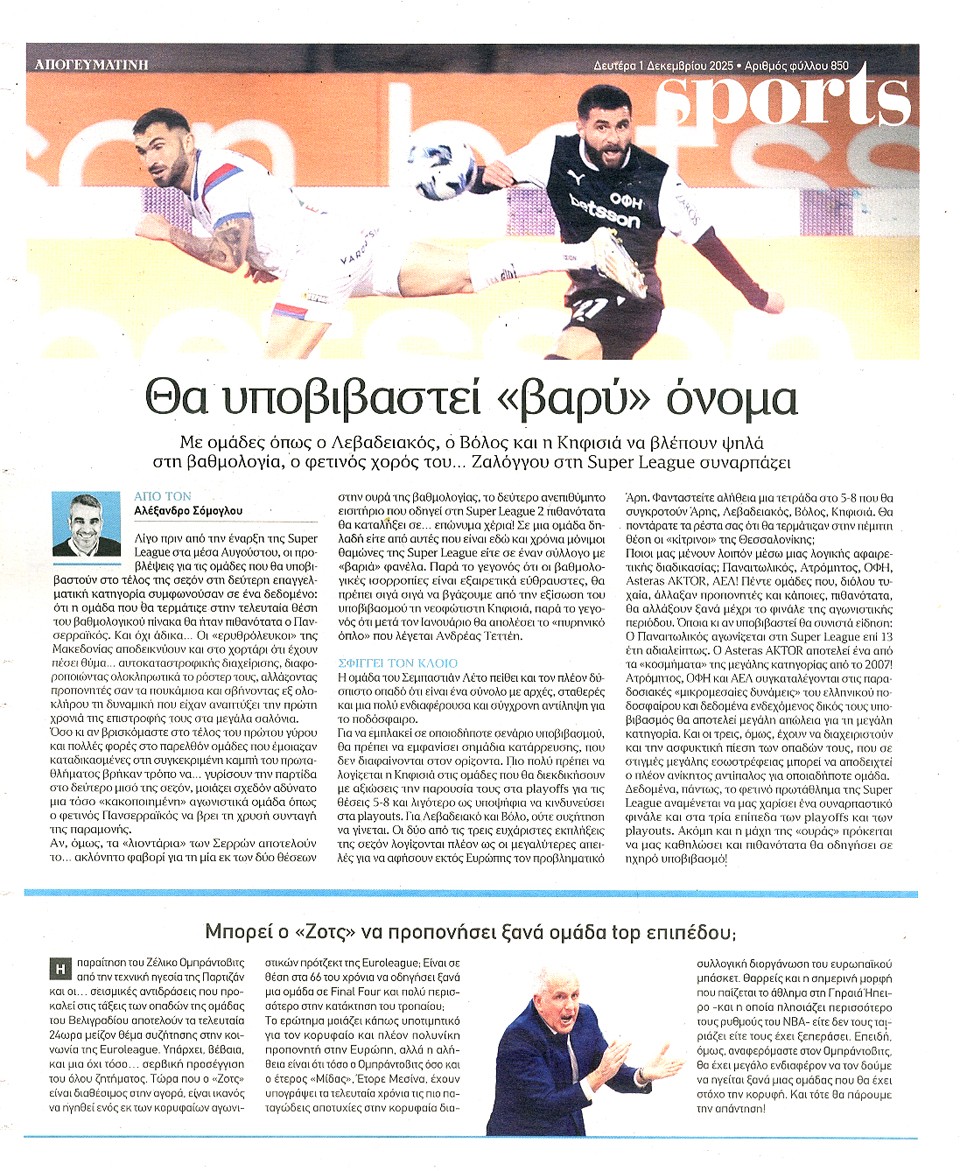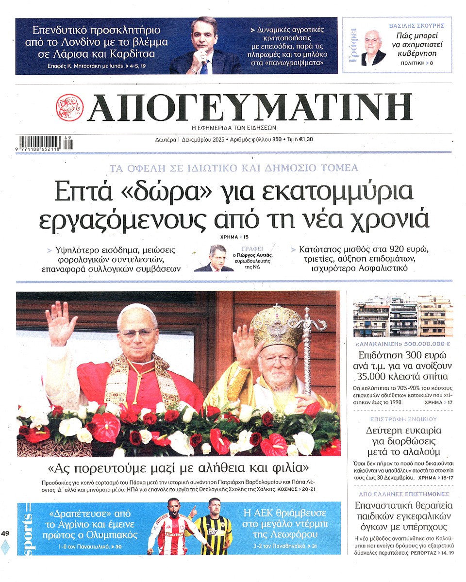 ΑΠΟΓΕΥΜΑΤΙΝΗ - 01 Δεκεμβρίου 2025