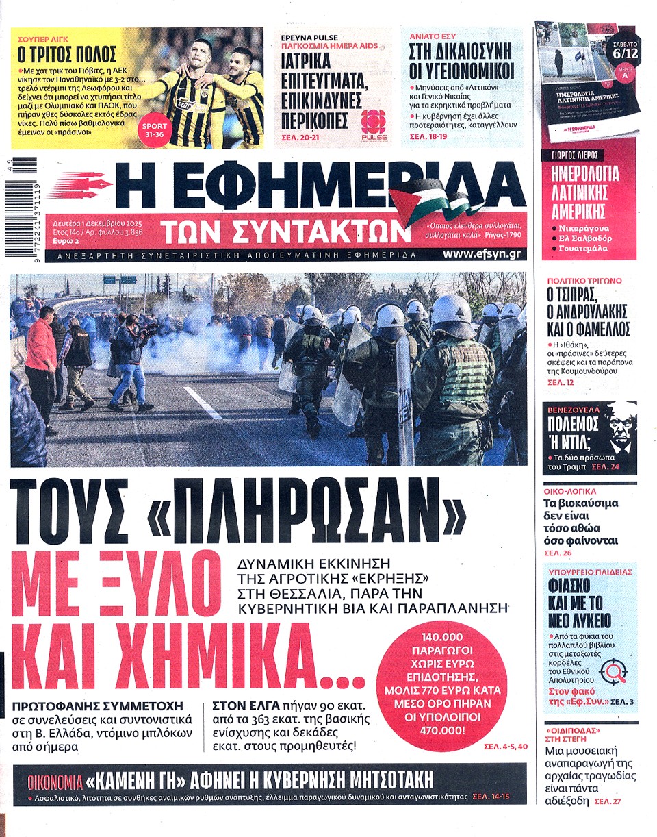 Η ΕΦΗΜΕΡΙΔΑ ΤΩΝ ΣΥΝΤΑΚΤΩΝ - 01 Δεκεμβρίου 2025