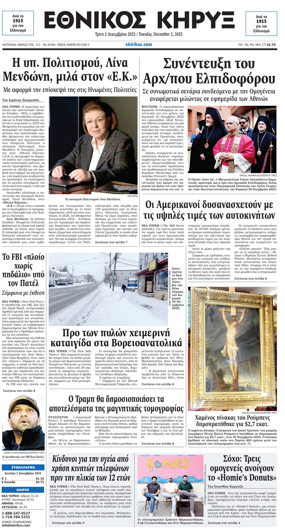 ΕΘΝΙΚΟΣ ΚΗΡΥΞ - 02 Δεκεμβρίου 2025