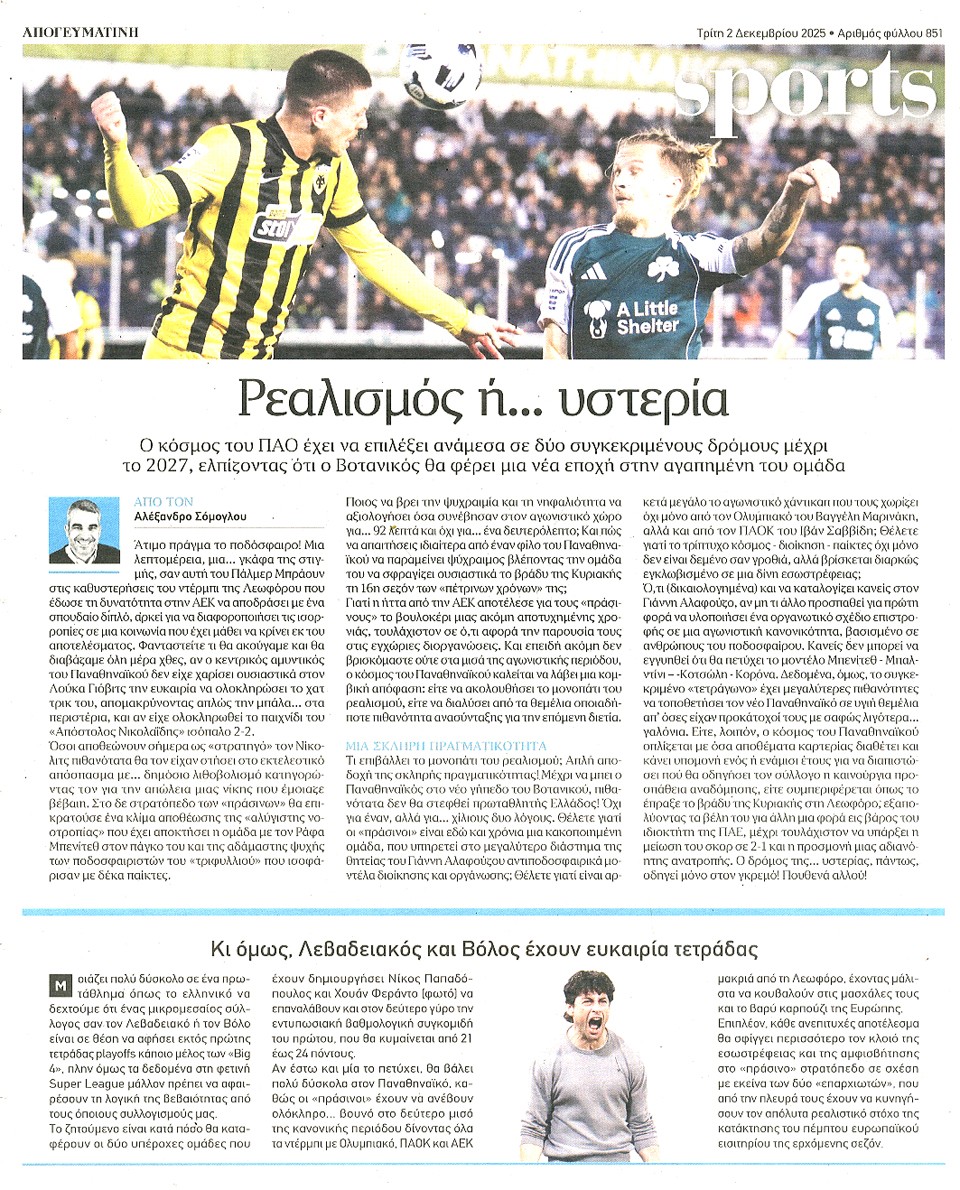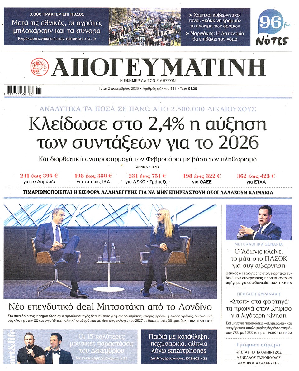 ΑΠΟΓΕΥΜΑΤΙΝΗ - 02 Δεκεμβρίου 2025