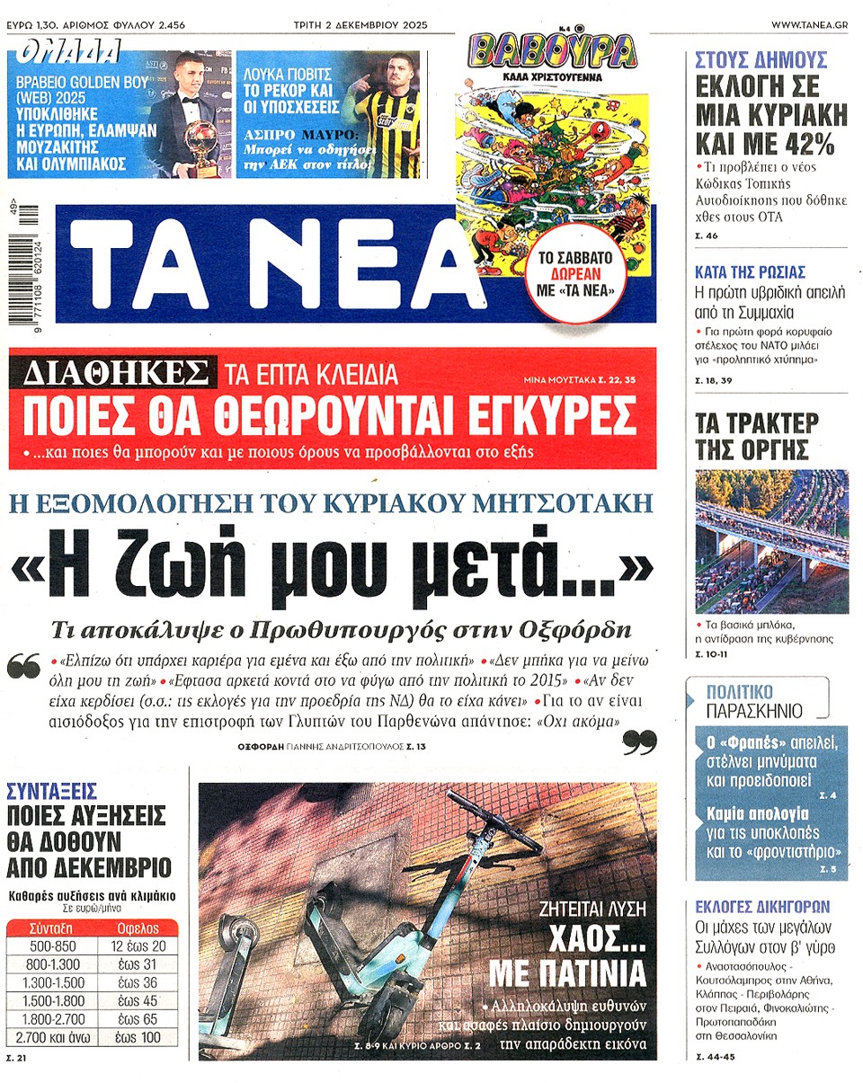 ΤΑ ΝΕΑ - 02 Δεκεμβρίου 2025