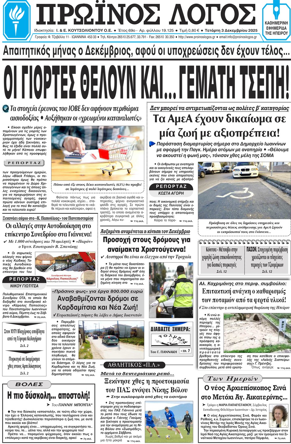 ΠΡΩΙΝΟΣ ΛΟΓΟΣ - 03 Δεκεμβρίου 2025