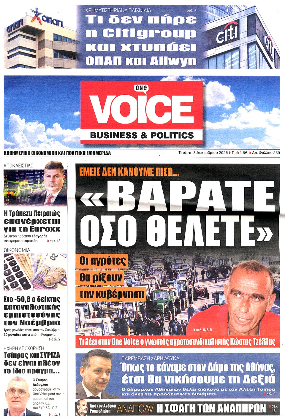 ONE VOICE - 03 Δεκεμβρίου 2025