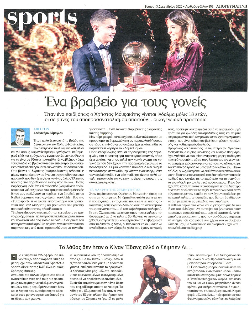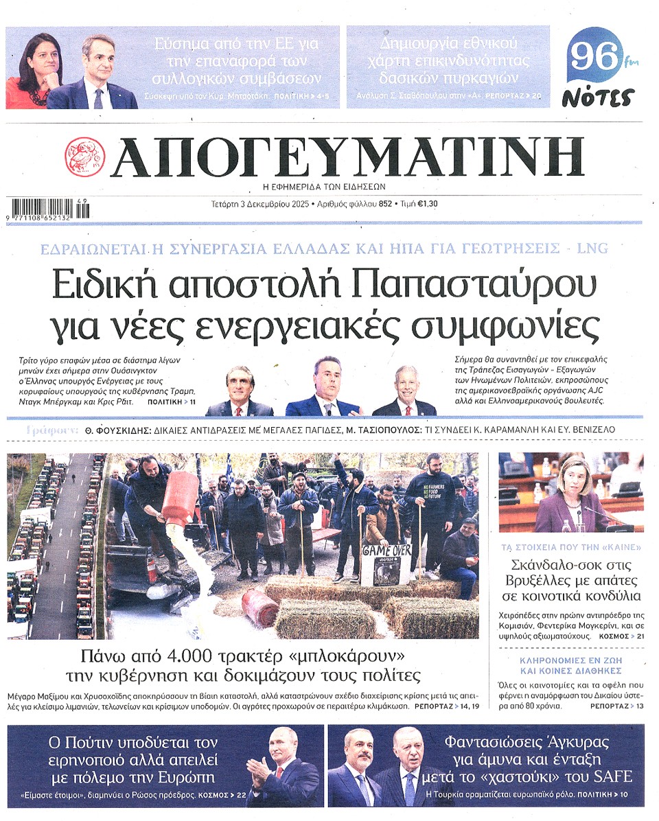 ΑΠΟΓΕΥΜΑΤΙΝΗ - 03 Δεκεμβρίου 2025