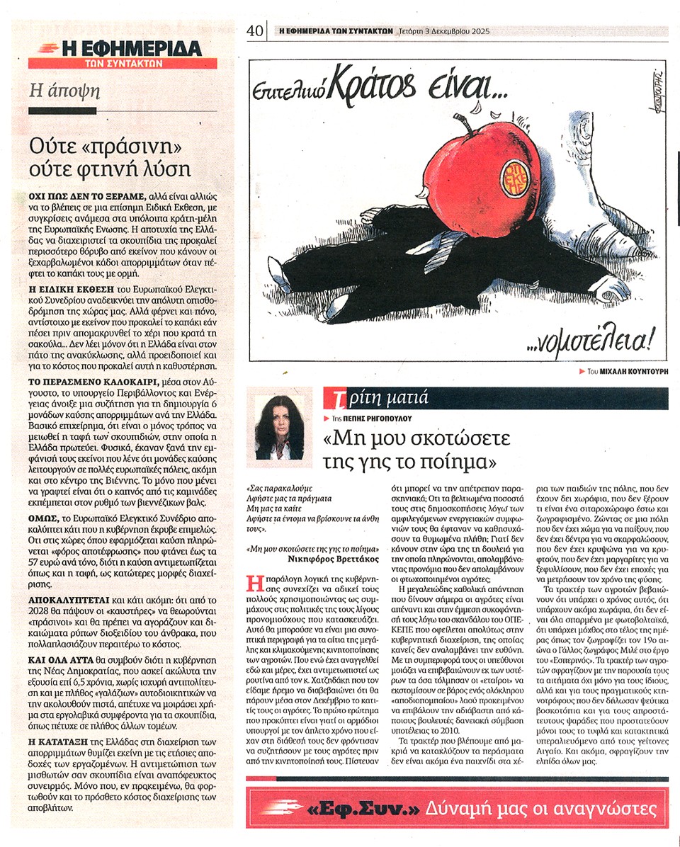 Η ΕΦΗΜΕΡΙΔΑ ΤΩΝ ΣΥΝΤΑΚΤΩΝ - 03 Δεκεμβρίου 2025