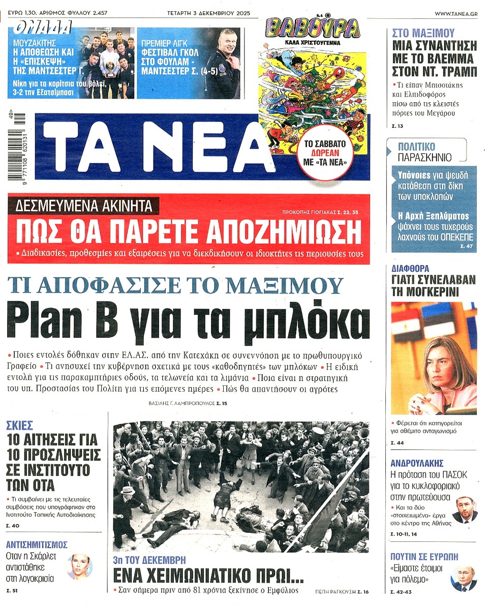 ΤΑ ΝΕΑ - 03 Δεκεμβρίου 2025