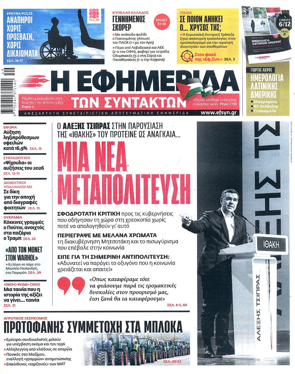 Η ΕΦΗΜΕΡΙΔΑ ΤΩΝ ΣΥΝΤΑΚΤΩΝ - 04 Δεκεμβρίου 2025