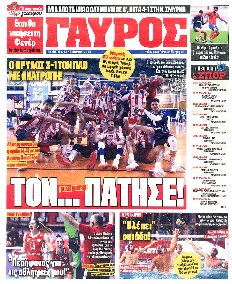 ΠΡΩΤΑΘΛΗΤΗΣ - 04 Δεκεμβρίου 2025