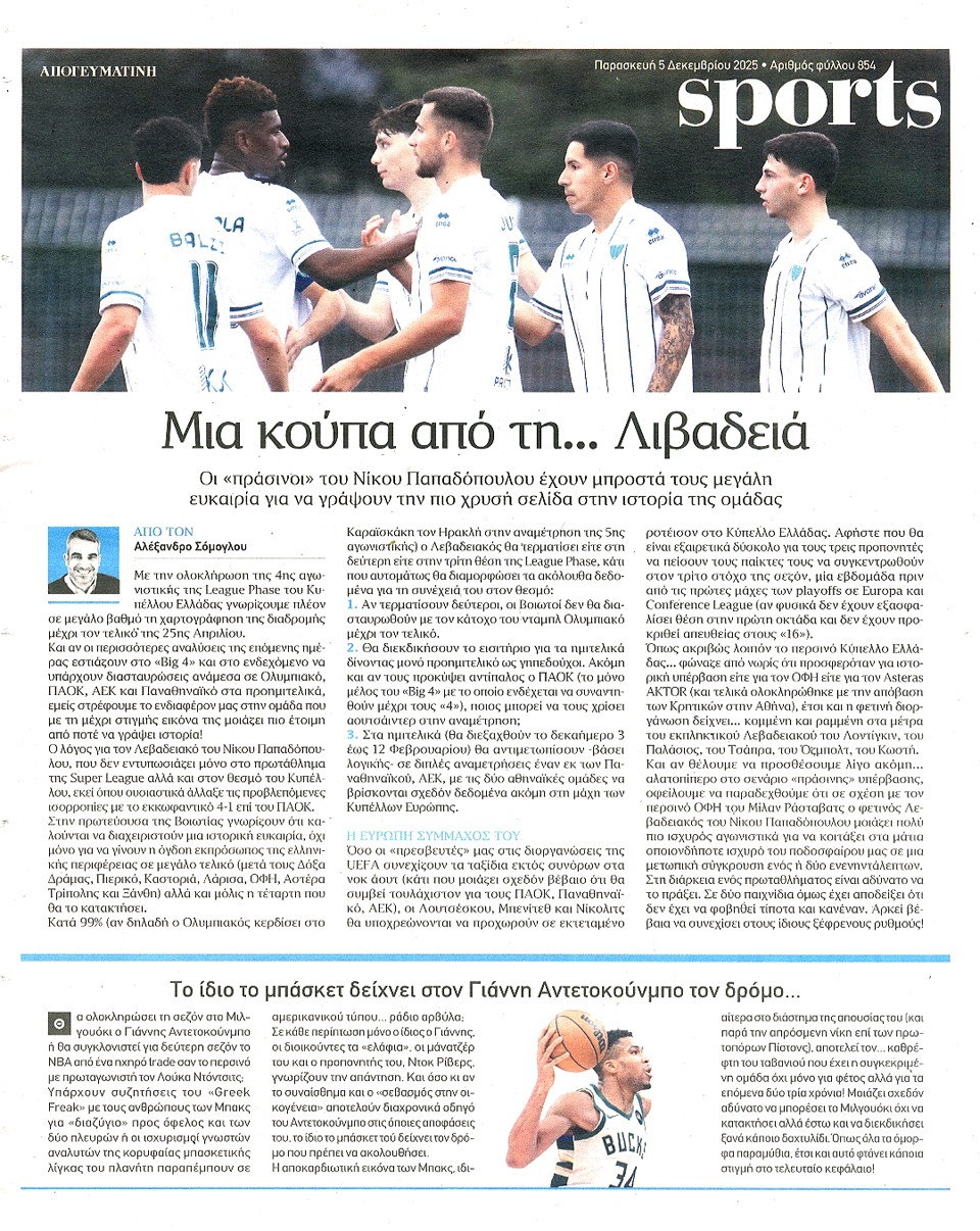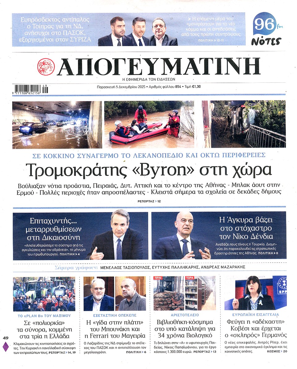 ΑΠΟΓΕΥΜΑΤΙΝΗ - 05 Δεκεμβρίου 2025