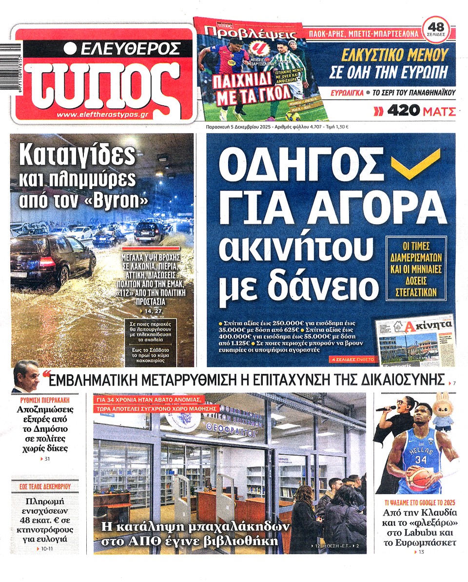 ΕΛΕΥΘΕΡΟΣ ΤΥΠΟΣ - 05 Δεκεμβρίου 2025