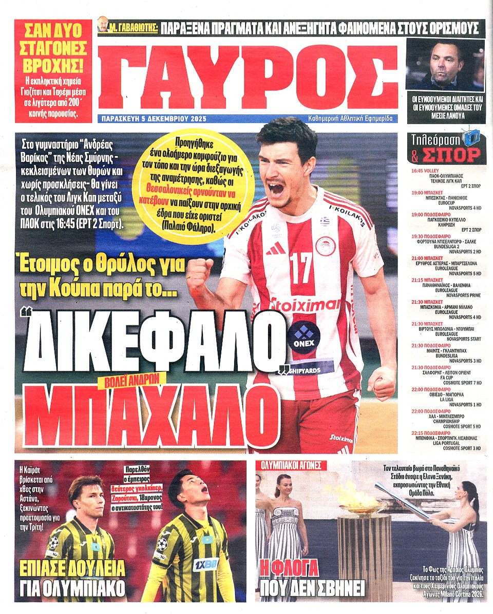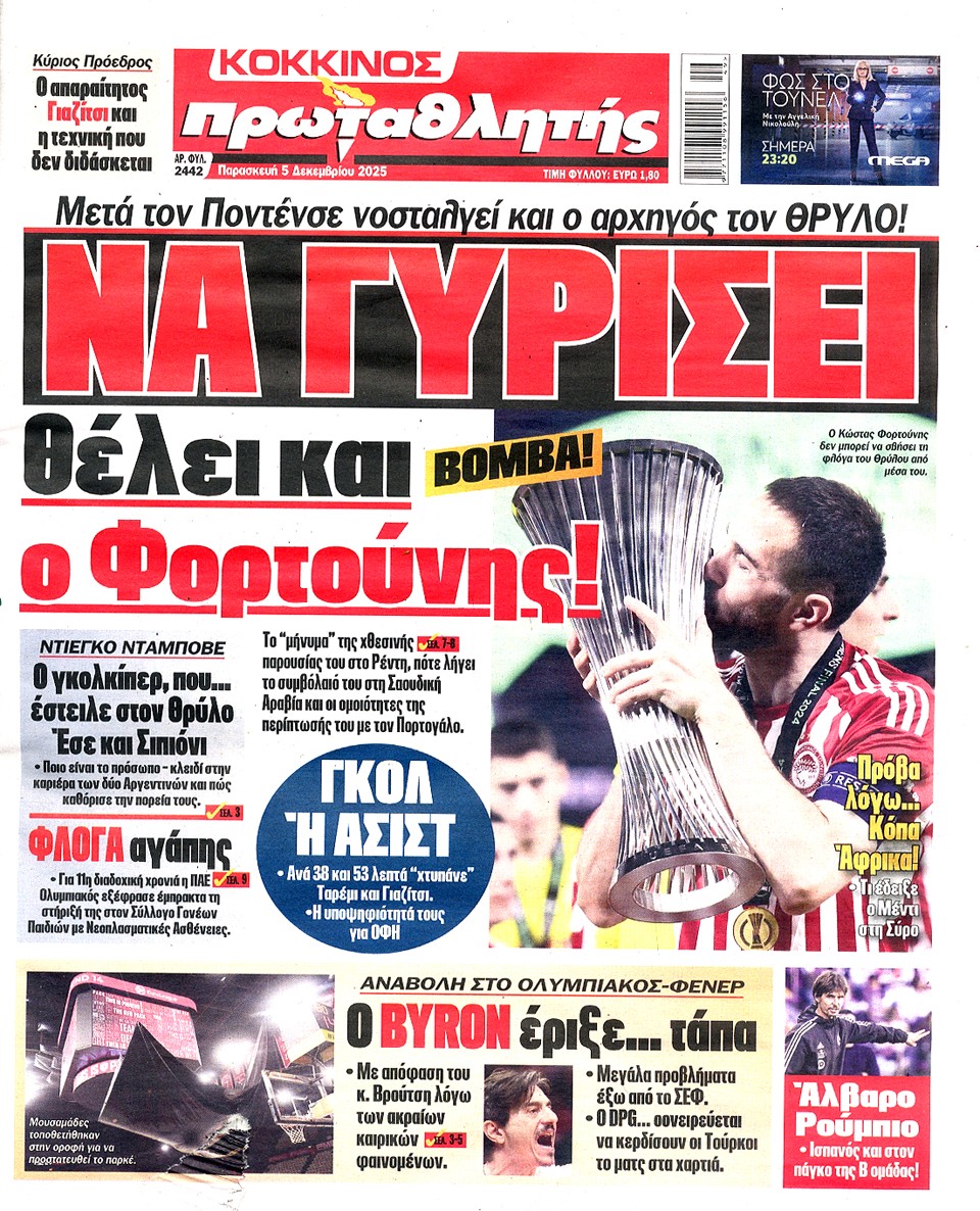 ΠΡΩΤΑΘΛΗΤΗΣ - 05 Δεκεμβρίου 2025