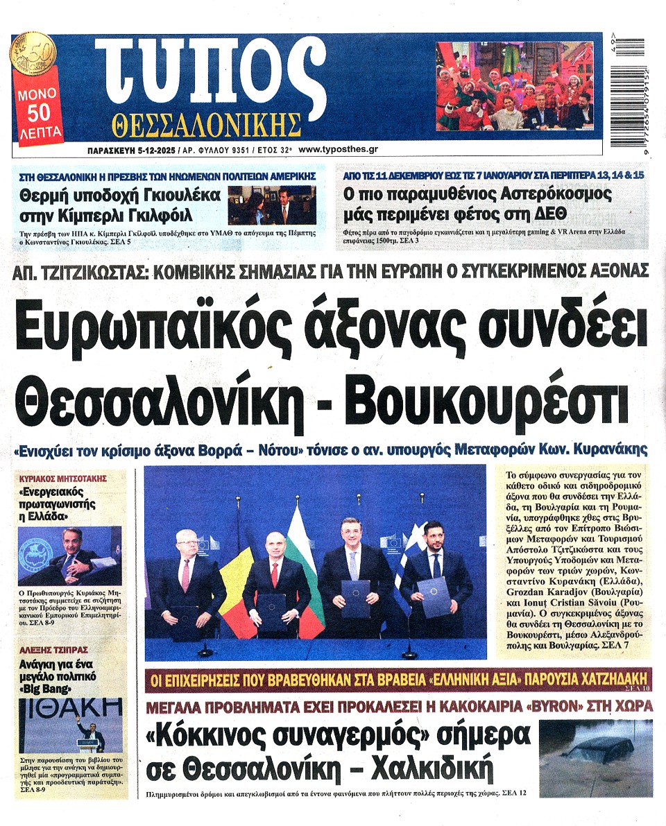 ΤΥΠΟΣ ΘΕΣΣΑΛΟΝΙΚΗΣ - 05 Δεκεμβρίου 2025