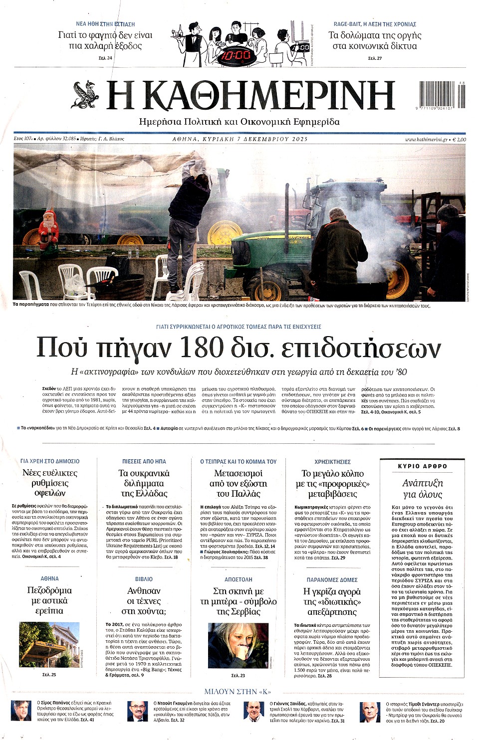 ΚΑΘΗΜΕΡΙΝΗ ΤΗΣ ΚΥΡΙΑΚΗΣ - 07 Δεκεμβρίου 2025