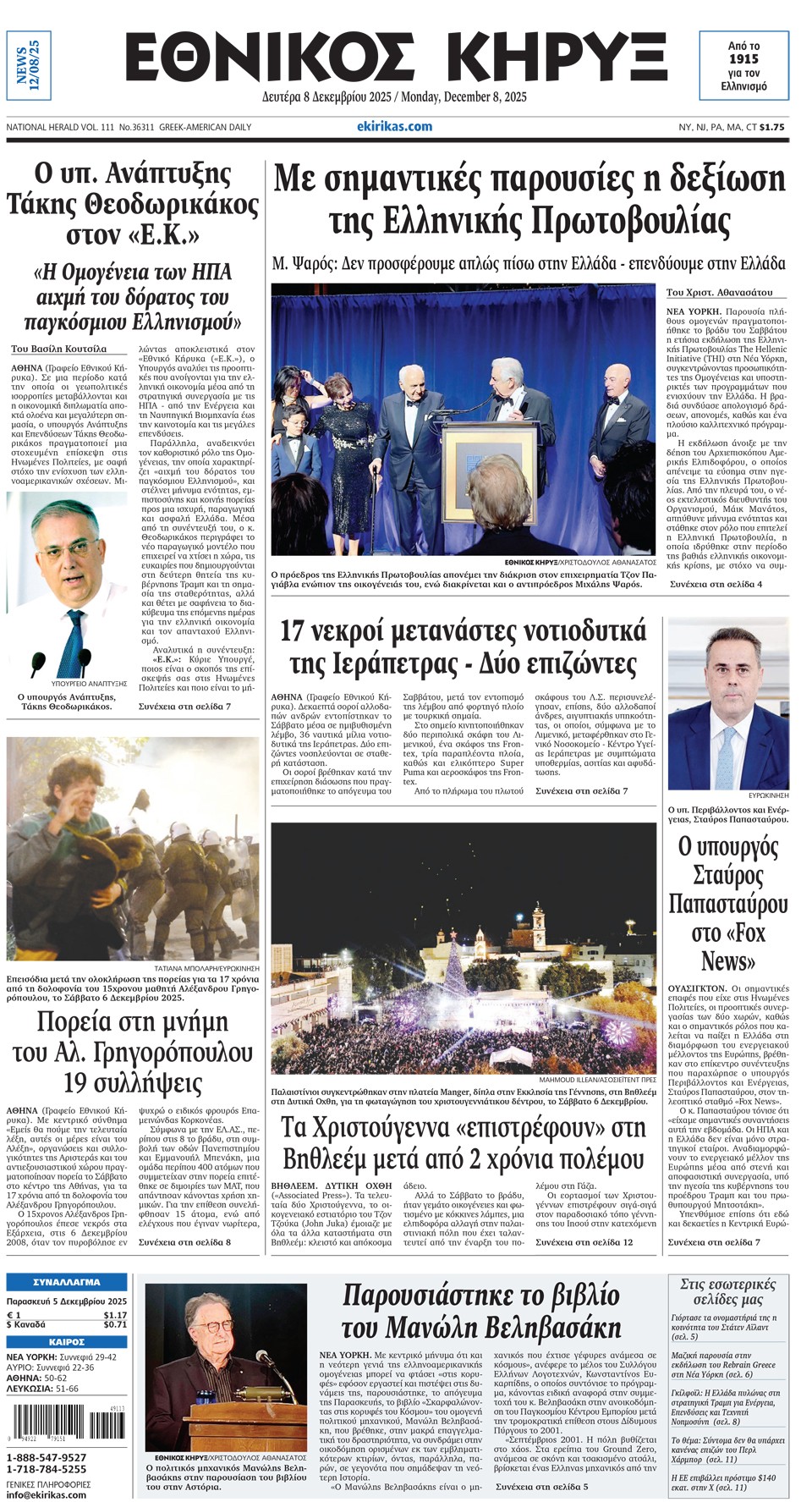 ΕΘΝΙΚΟΣ ΚΗΡΥΞ - 08 Δεκεμβρίου 2025