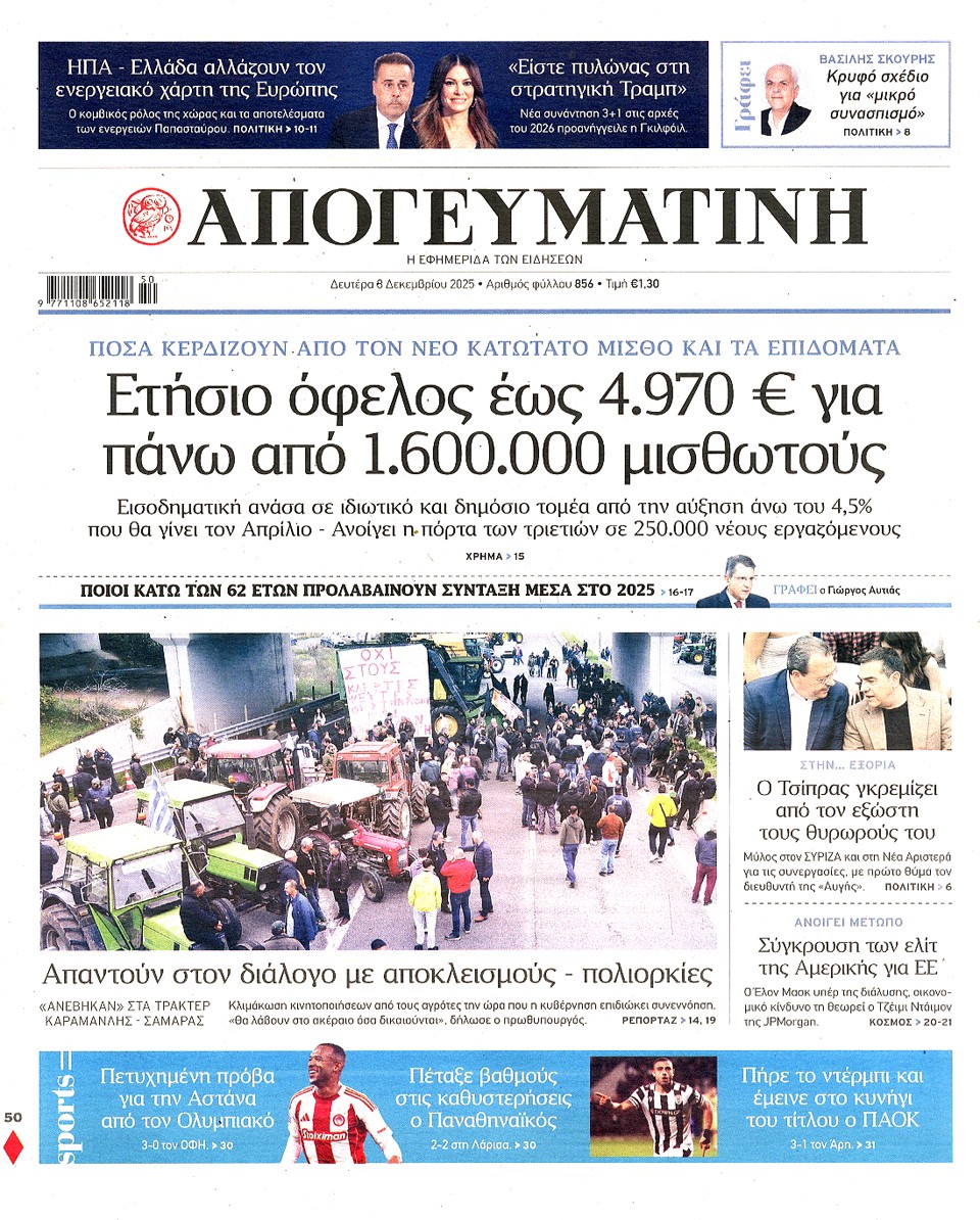 ΑΠΟΓΕΥΜΑΤΙΝΗ - 08 Δεκεμβρίου 2025
