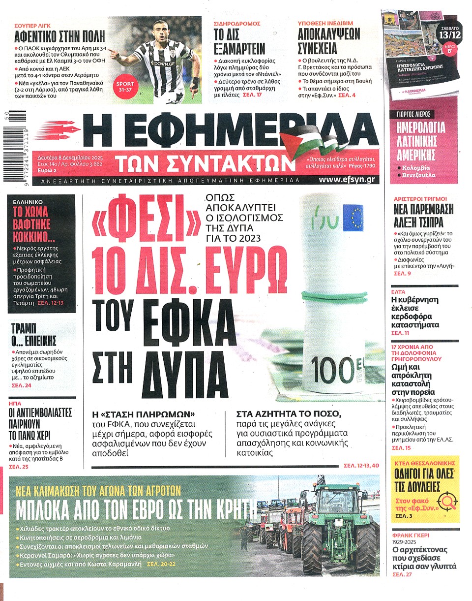 Η ΕΦΗΜΕΡΙΔΑ ΤΩΝ ΣΥΝΤΑΚΤΩΝ - 08 Δεκεμβρίου 2025