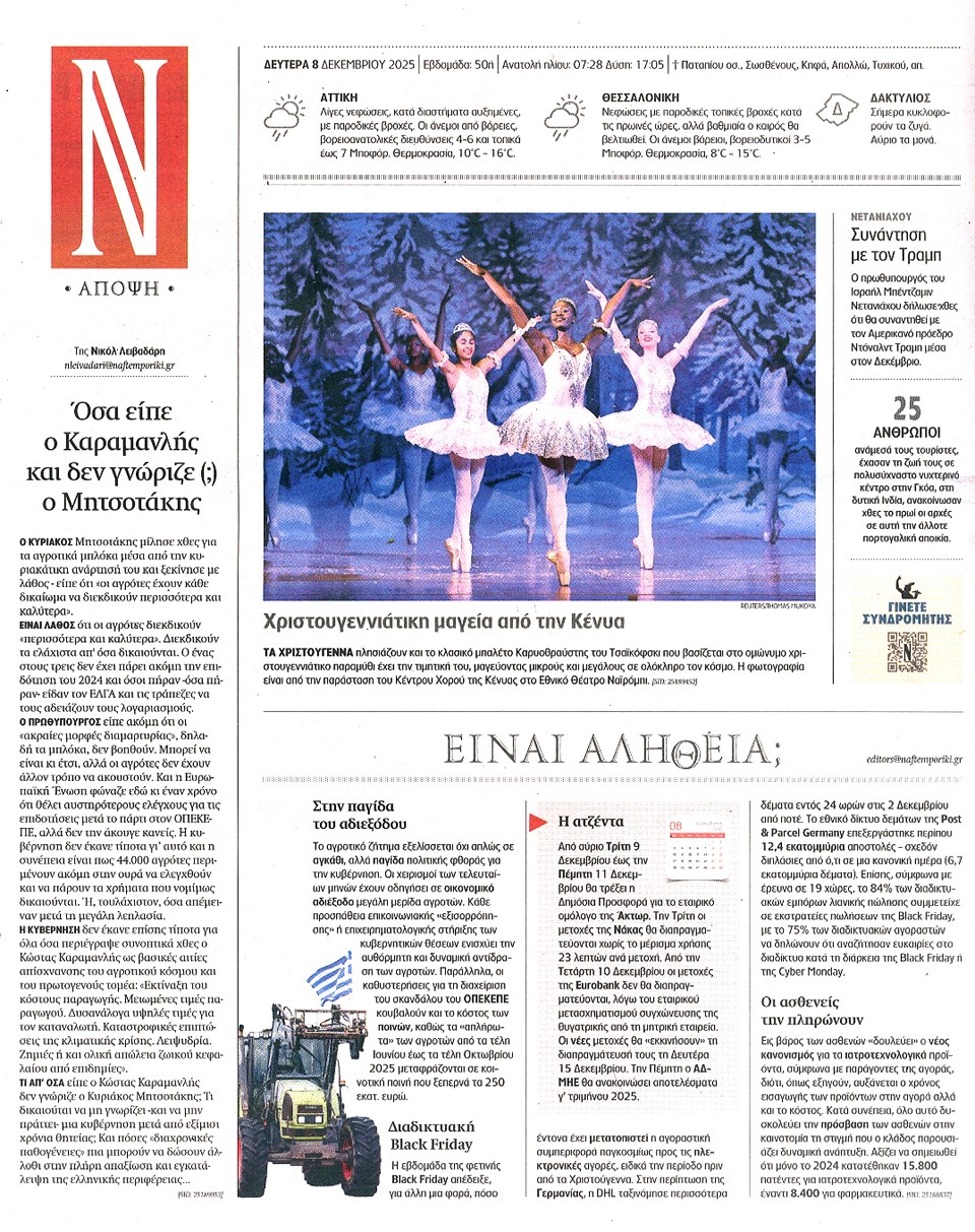 ΝΑΥΤΕΜΠΟΡΙΚΗ - 08 Δεκεμβρίου 2025