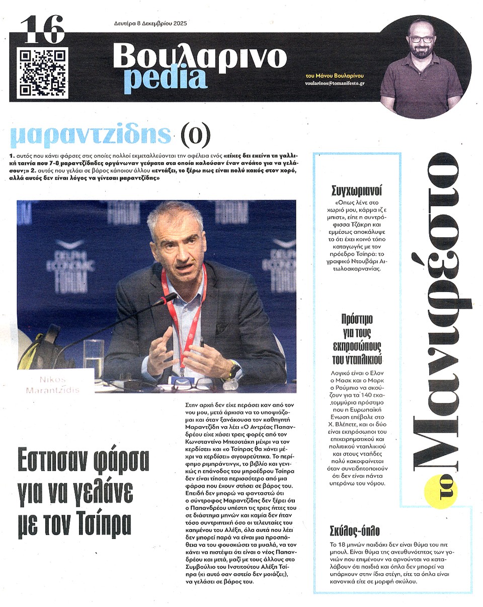 ΤΟ ΜΑΝΙΦΕΣΤΟ - 08 Δεκεμβρίου 2025