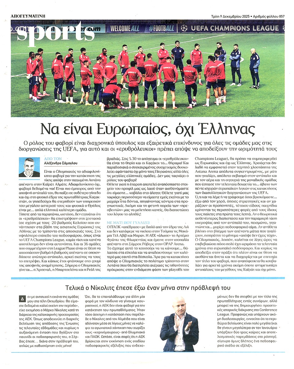 ΑΠΟΓΕΥΜΑΤΙΝΗ - 09 Δεκεμβρίου 2025