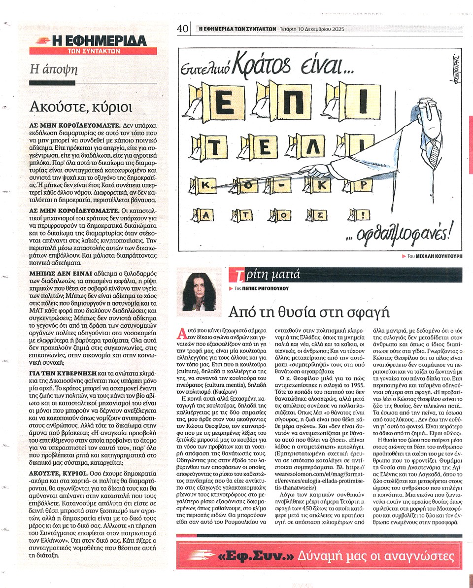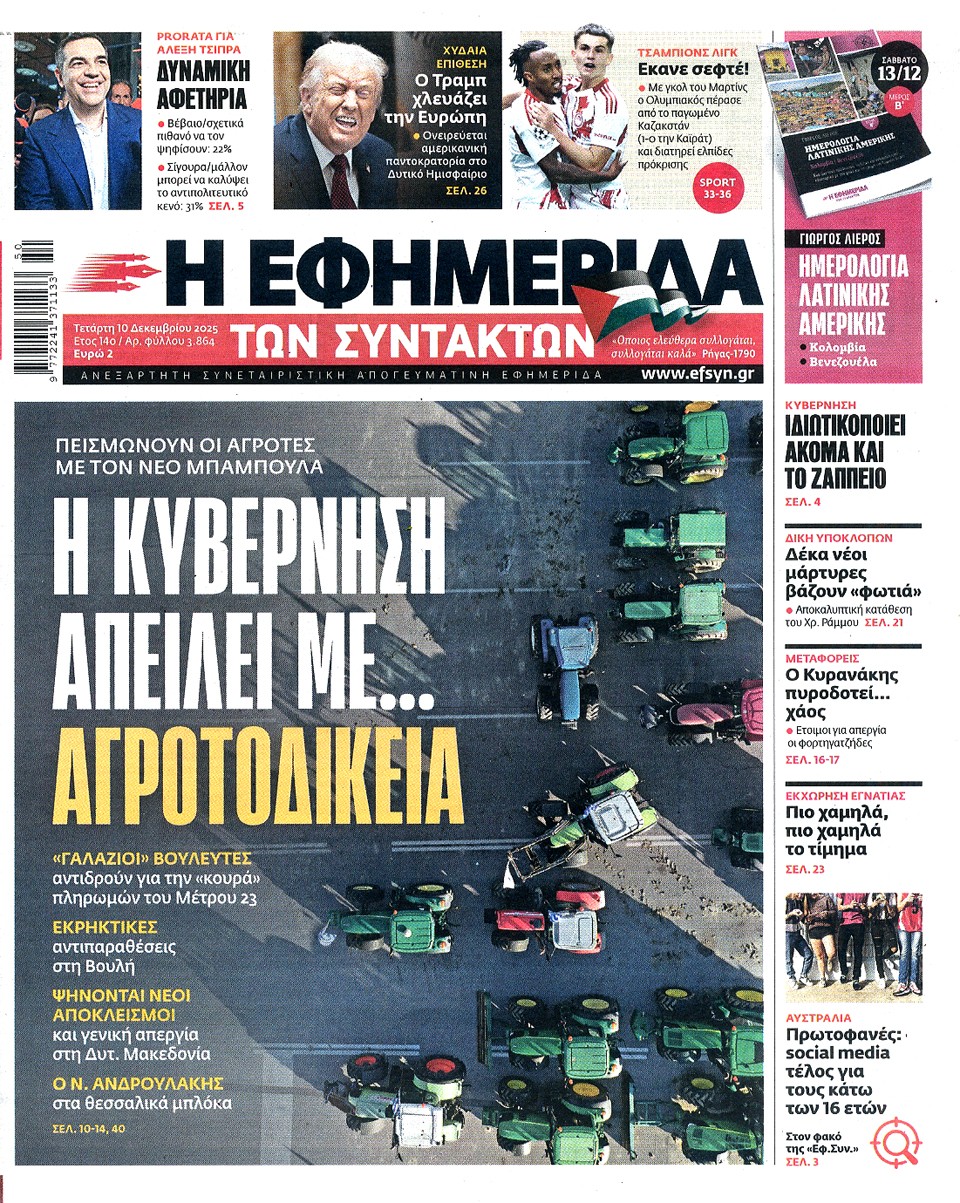 Η ΕΦΗΜΕΡΙΔΑ ΤΩΝ ΣΥΝΤΑΚΤΩΝ - 10 Δεκεμβρίου 2025