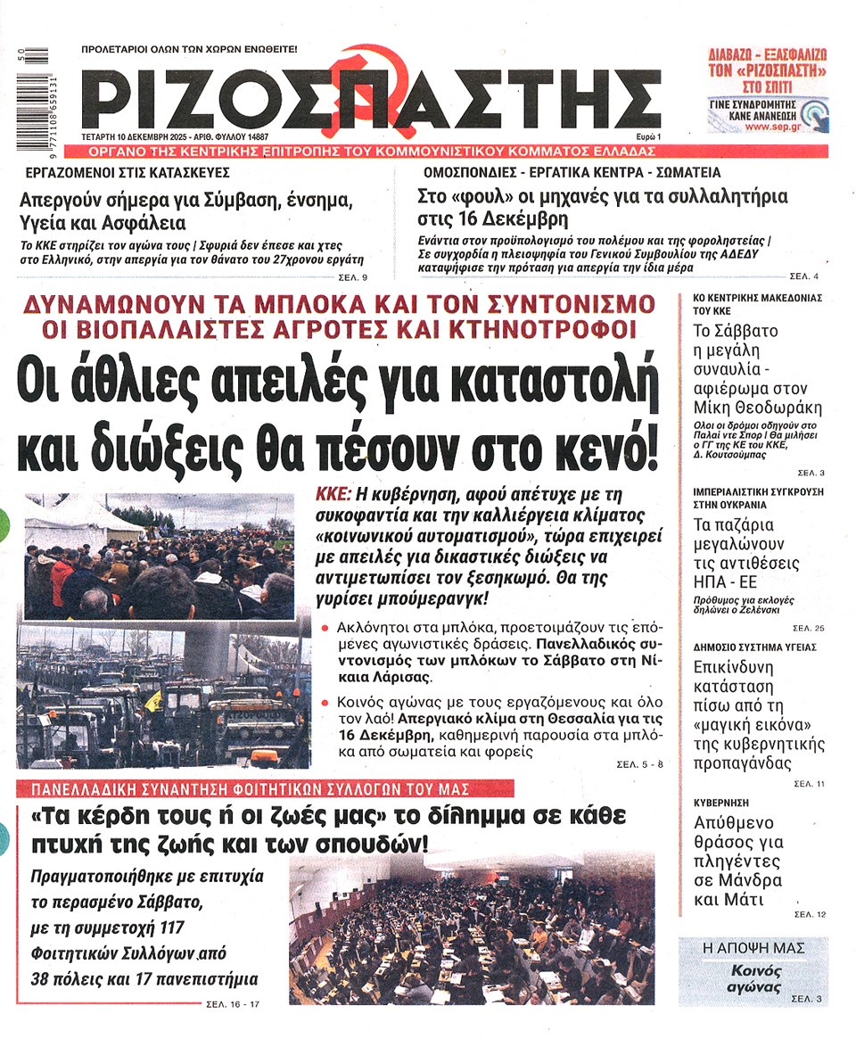 ΡΙΖΟΣΠΑΣΤΗΣ - 10 Δεκεμβρίου 2025